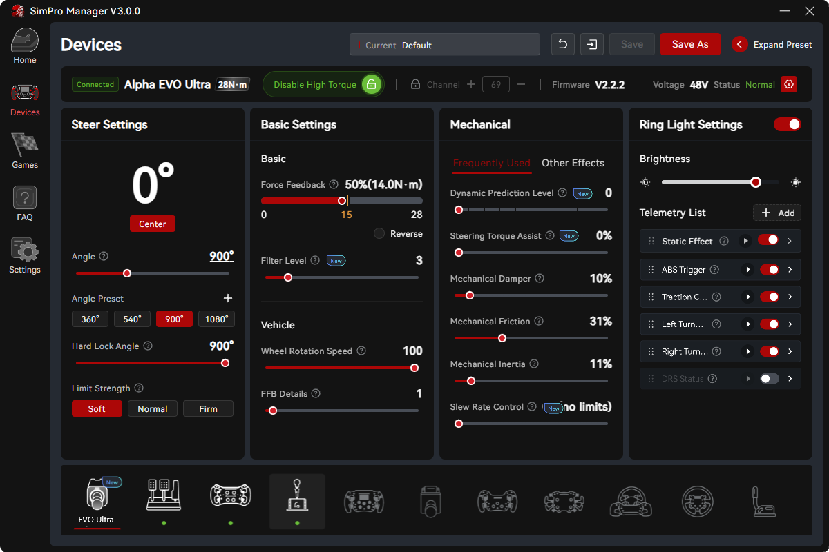 Equipped with 11 connection ports for full SIMAGIC ecosystem support.