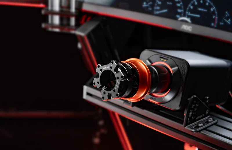 Built-in USB port enables third-party wheels to connect directly to the Alpha EVO Wheelbase with plug-and-play functionality.